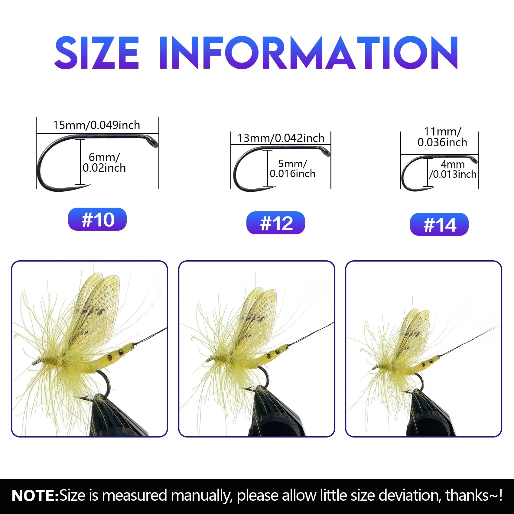 Material: Wings are flexible, transparent, waterproof, and UV resistant. Bodies are soft and of micro hollow structure, keeping a fly on the surface. High tech UV integrated in the bodies gives full spectrum of fluorescence and fish attracting. All the body parts are environmental friendly.