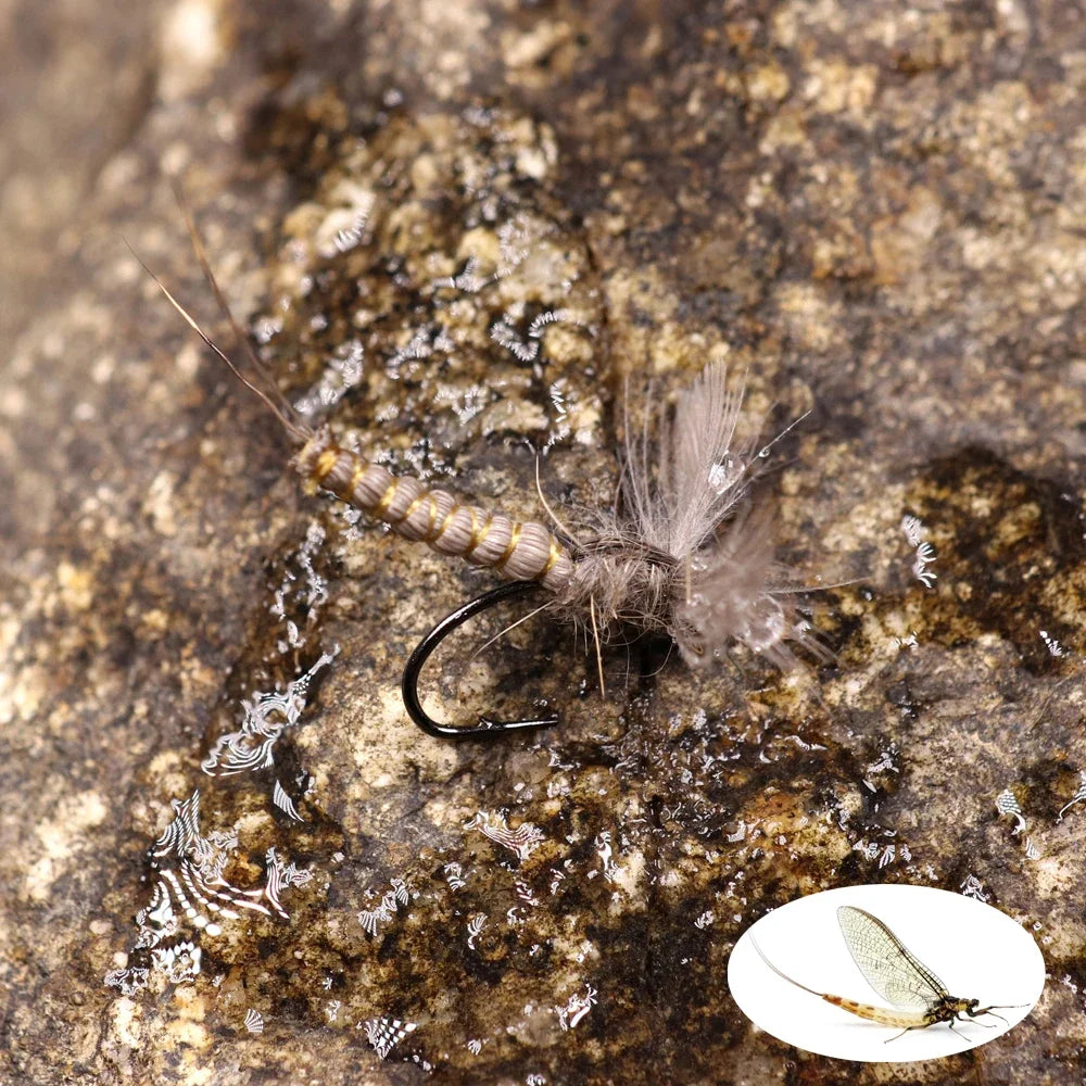 WIFREO 6PCS #10#12 #14 CDC Feather Wing Mayfly Deer Hair Body Dry Fly Rocky River Trout Fishing Flies Bait Lure