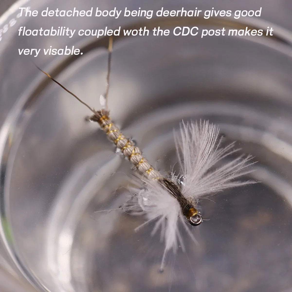 The detached body being deerhair gives good floatability coupled woth the CDC post makes it very visable.